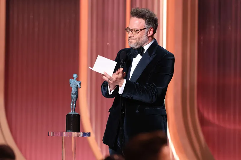 In a heart-wrenching tribute, Seth Rogen accepted the award for Outstanding Performance by a Female Actor in a Comedy Series on behalf of the late Catherine O'Hara for her role in "The Studio." The room fell silent as Rogen, visibly emotional, honored O'Hara's legendary career, which included past winners like Jane Fonda and Morgan Freeman. "She was a force of nature," Rogen said, sparking a standing ovation.