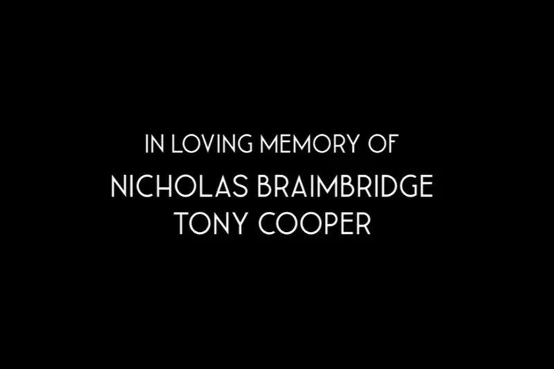 The emotional tribute screen that honored Nicholas Braimbridge and Tony Cooper at the end of Bridgerton Season 4. Netflix