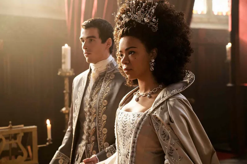 Corey Mylchreest as King George and India Amarteifio as Queen Charlotte in 'Queen Charlotte: A Bridgerton Story'—a series that also relied heavily on Tony Cooper's behind-the-scenes work. Liam Daniel/Netflix