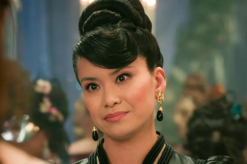 CHARACTER CONTEXT: Ironically, Araminta is portrayed as a meticulous social climber obsessed with appearances and maintaining her daughters' perfect debut into society. As Leung describes her character: "She's a force of nature" - though fans are now joking she might be a time traveler too.
