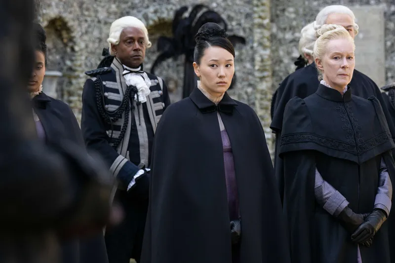 Masali Baduza's Michaela challenges Regency grief norms. Liam Daniel/Netflix