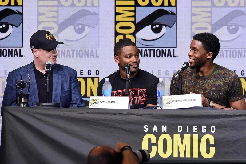 Kevin Feige, Ryan Coogler, and Chadwick Boseman in San Diego on July 22, 2017. Kevin Winter/Getty