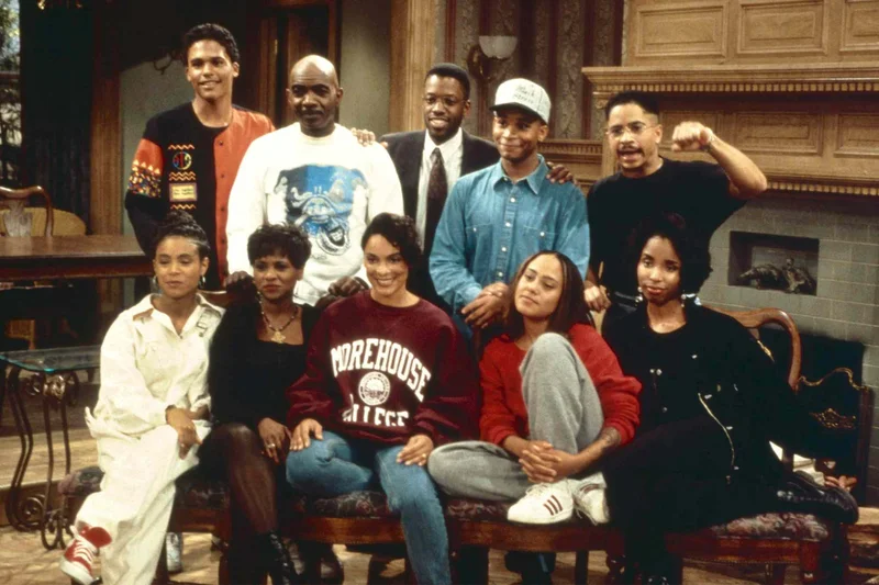 Jada Pinkett-Smith, Karen Malina White, Jasmine Guy, Cree Summer, Ajai Sanders, rear from left: Bumper Robinson, Lou Myers, Kadeem Hardison, Patrick Malone, Darryl M. Bell on 'A Different World'. Carsey-Werner/courtesy Everett