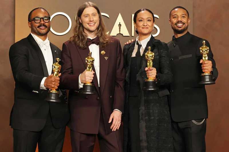 Ryan Coogler, Ludwig Goransson, Autumn Durald Arkapaw, and Michael B. Jordan with their awards at the 98th Oscars. Mike Coppola/Getty