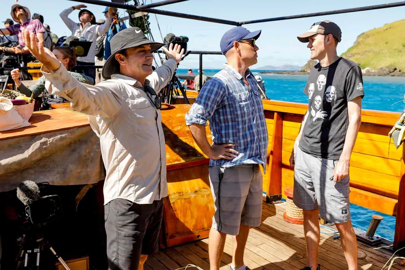 Jeff Probst, Matt Van Wagenen, and TheEntBase's Dalton Ross on day 1 of 'Survivor: Edge of Extinction'. Robert Voets/CBS