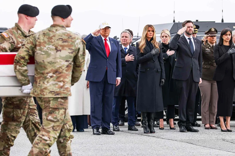 The viral image: Donald Trump's hat-wearing salute during a solemn military transfer. Valerie Plesch/Bloomberg via Getty