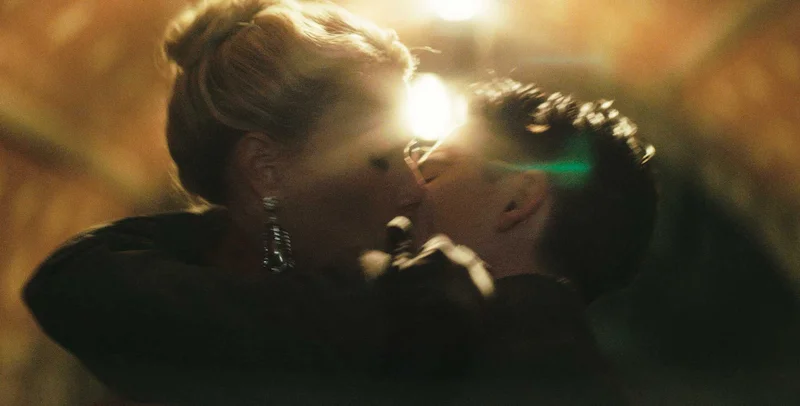 Gwyneth Paltrow as Kay and Timothee Chalamet as Marty in 'Marty Supreme'. A24